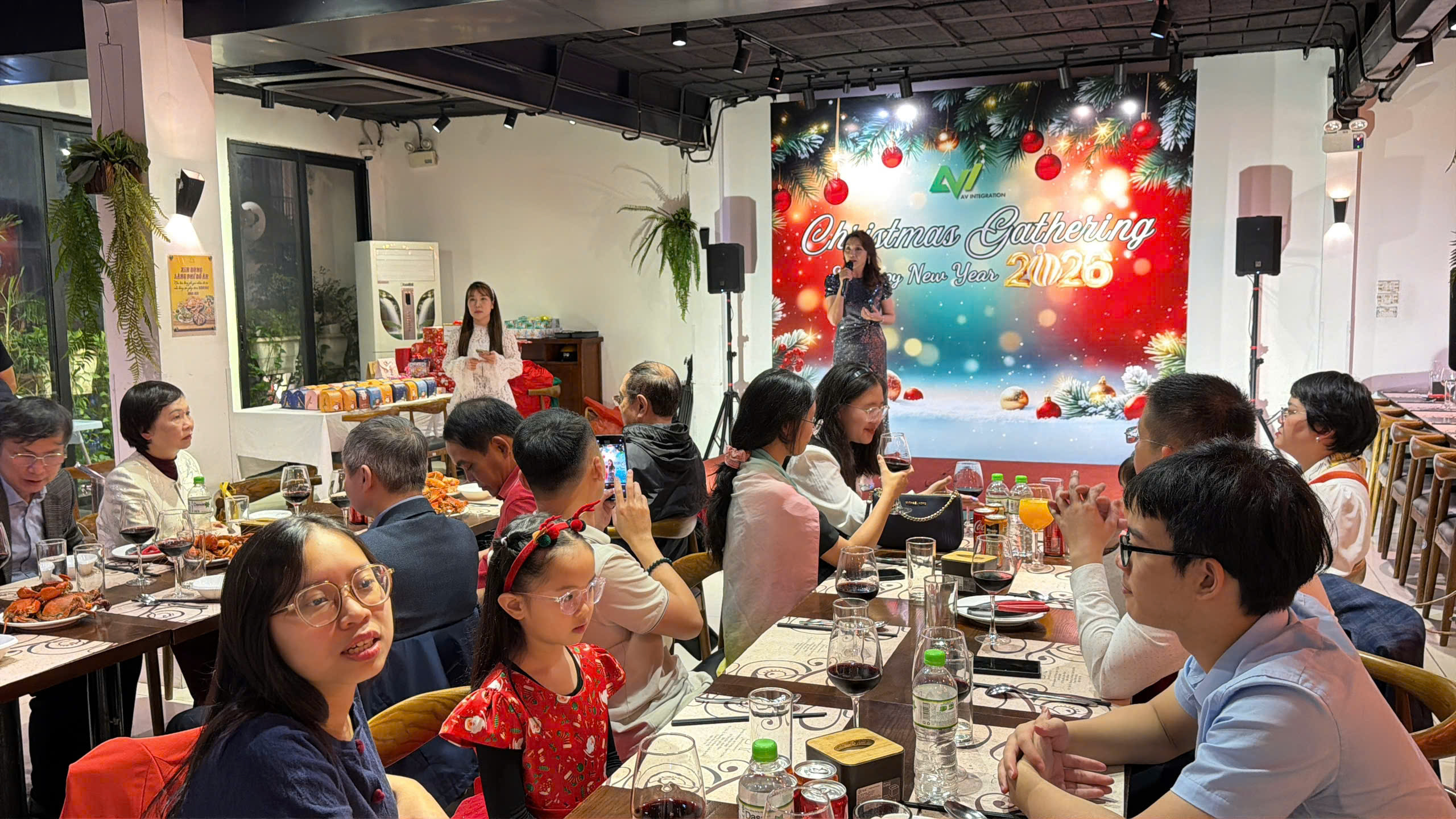 Tối 20/12, Công ty Cổ phần Tích hợp AV (AVI) đã tổ chức đêm tiệc “Christmas Gathering & Happy New Year 2026” tại nhà hàng Bay Seafood Buffet. Bên cạnh không khí sum vầy bên gia đình CBNV, chương trình năm nay còn trở nên đặc biệt hơn khi AVI chính thức hoàn thành vượt kế hoạch doanh thu và lợi nhuận năm 2025 trước 1 tháng. Thành tích ấn tượng này là minh chứng cho sự nỗ lực bền bỉ của toàn thể đội ngũ, đồng thời tạo nên bầu không khí Giáng sinh càng thêm rộn ràng và đầy tự hào.